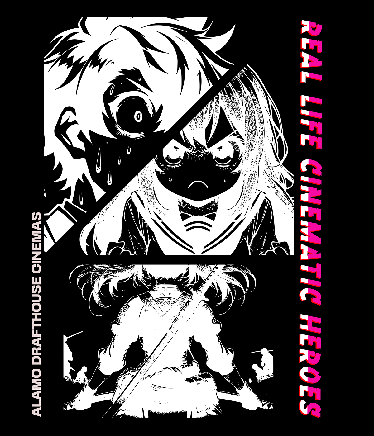 This design channels raw anime energy — a tribute to the chaos, courage, and cinematic spirit that defines Alamo Drafthouse.